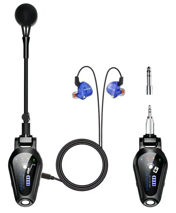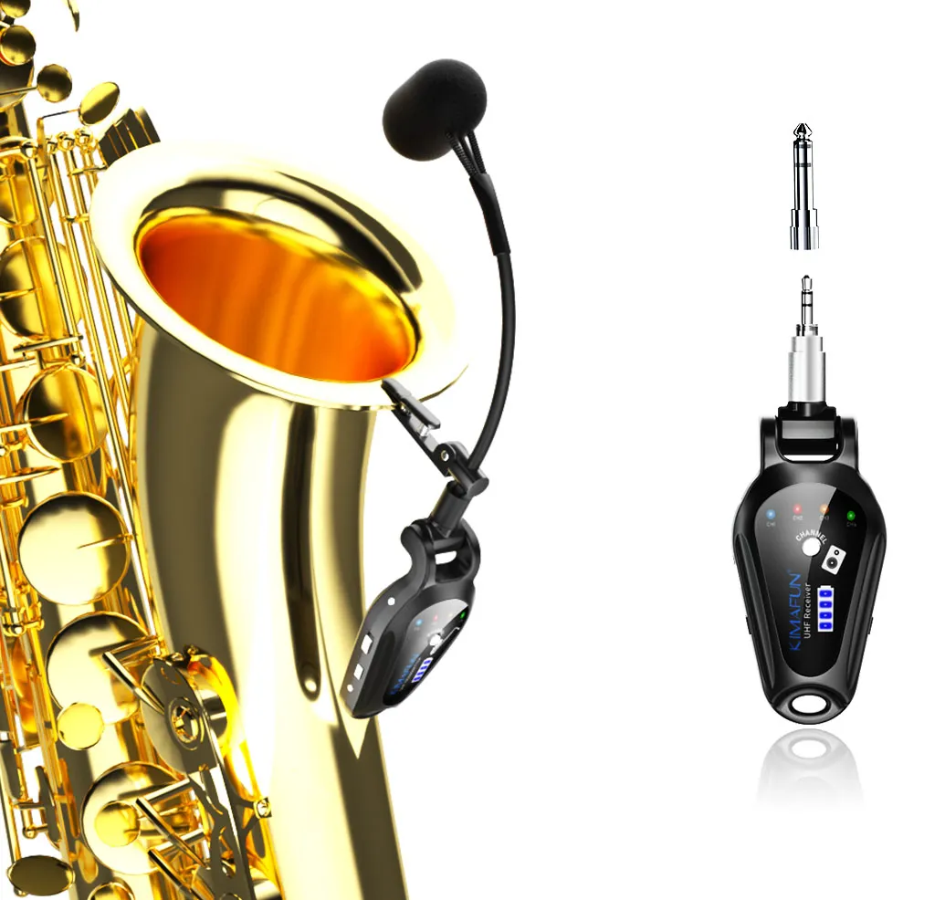 Беспроводной микрофон для саксофона kimafun km-u307-1 - беспроводной 600-920 мгц ненаправленный конденсаторный микрофон для саксофона со встроенным внутриушным мониторингом, реверберацией и записью