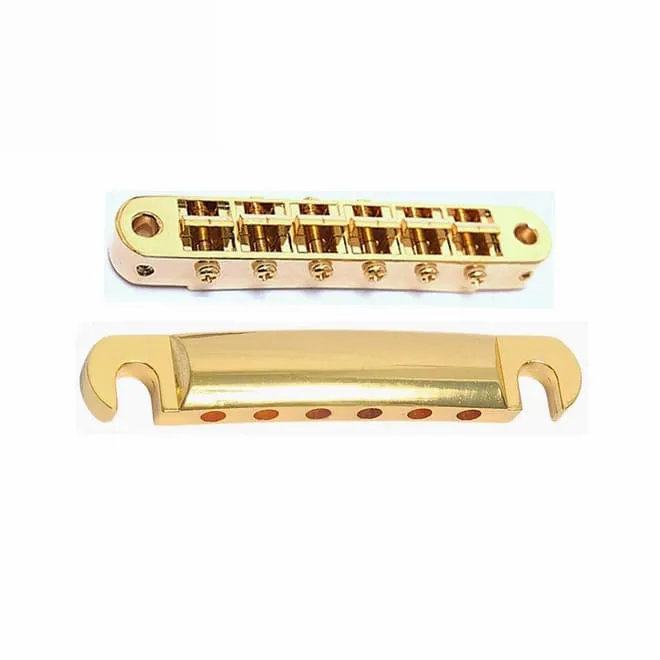 TOM003-GD комплект струнодержателя Tune-o-matic, межструнное расстояние 52,5 мм, с втулками и опорами, золото, Donlis