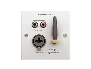 CVGAUDIO PW/EX-IN/W - Настенная панель для удаленного подключения балансного микрофона MIC IN, небалансного линейного сигнала 2RCA, Bluetooth с внешней антенной, передача отдельно сигналов MIC IN и LINE IN + Bluetooth на расстояние до 100m, светлый алюмин