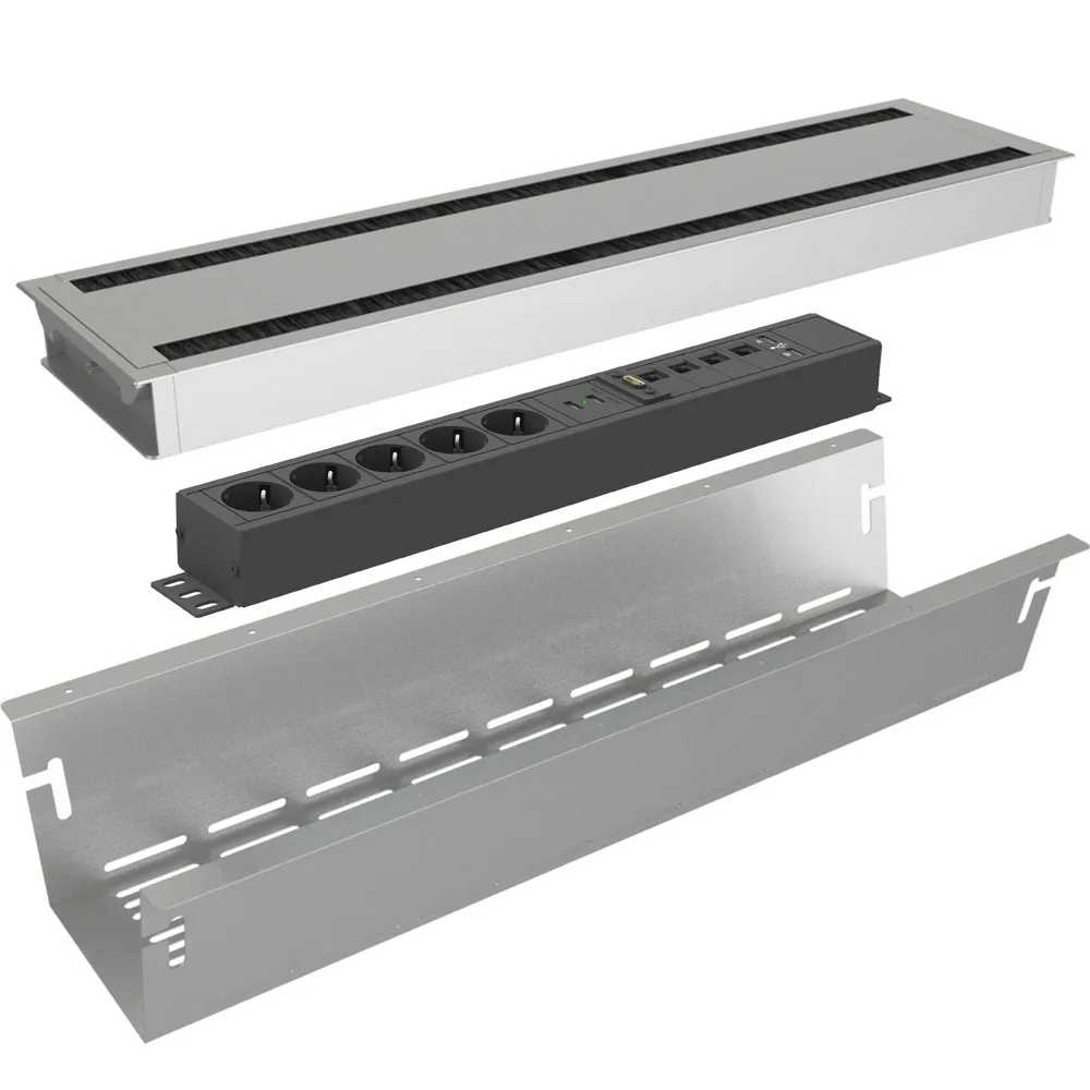 FORMING FUNCTION 9704050402- Розеточная станция серии Axessline с лючком, розеточный блок 9402050609 (5 розеток, 2xUSB-С питание, 30 Вт, 1xHDMI, 2xRJ45, 1xUSB-С), серебристая