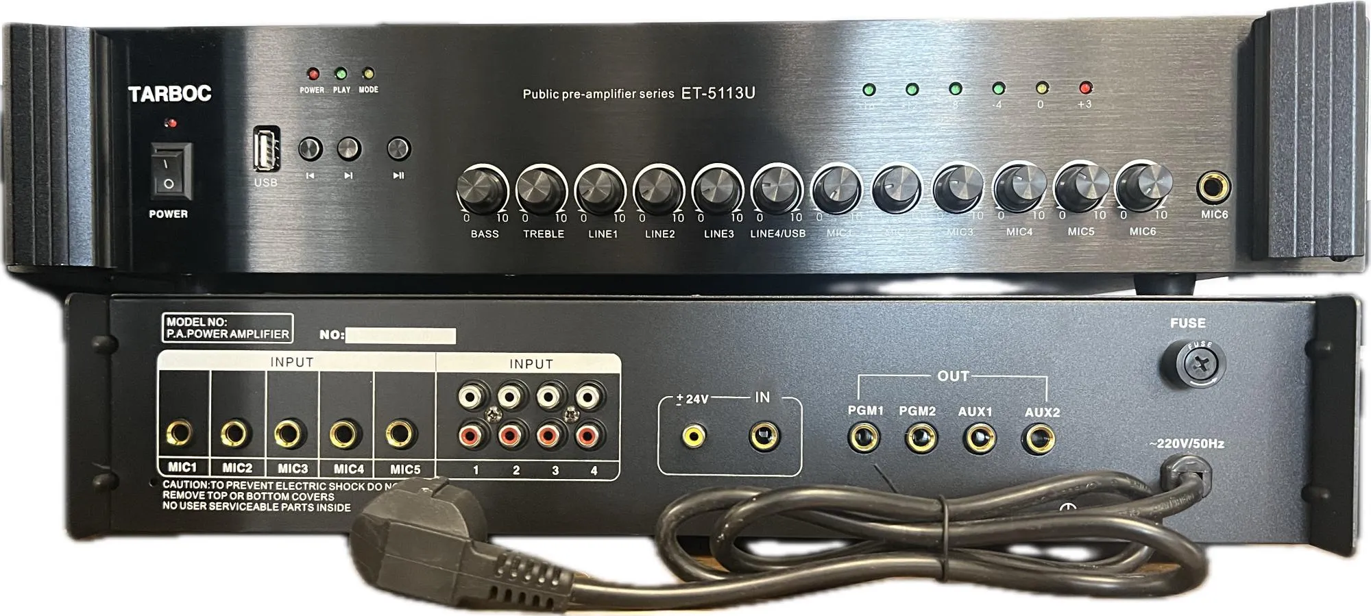 • Каналы микрофонного входа и каналы линейного входа могут быть отрегулированы независимо от громкости, и есть общая ручка управления громкостью;