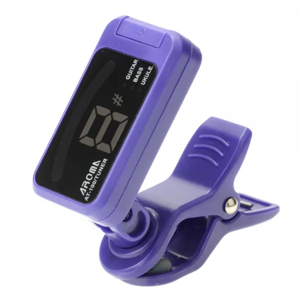 AROMA AT-100 purple тюнер хроматический для гитары, бас и укулеле, на клипсе