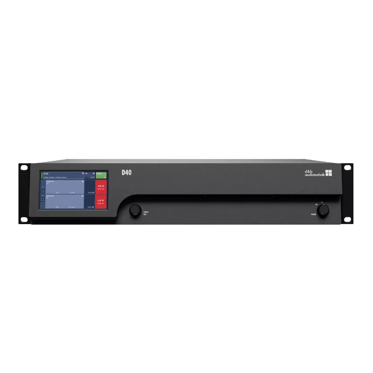 d&b audiotechnik D40 Z2850.000 Усилитель 4x2400 Вт/4 Ом с контроллером: цветной сенсорный дисплей, предустановки для всех АС d&b кроме GSL, SL-SUB, J-Series, M2, пароль, 32 полосный граф. EQ, фильтры, delay. Дистанционное управление Ethernet/CAN. Входы: а