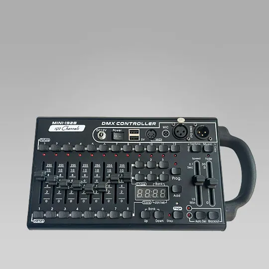 Minifade 192 Компактный пульт управления светом DIALighting Minifade 192. 192 каналов управления DMX. 8 фейдеров управления. 12 приборов по 16 каналов. Возможность программировать контроллер и записывать сцены. 23 банка по 8 сцен в каждом.