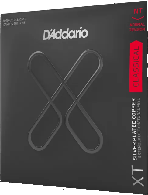 Комплект струн для классической гитары d'addario xtc45ff - струны для классической гитары с карбоновыми верхами и басами dynacore с посеребренной медной обмоткой и обработкой xt. среднее натяжение, толщина .024-.044 дюйма
