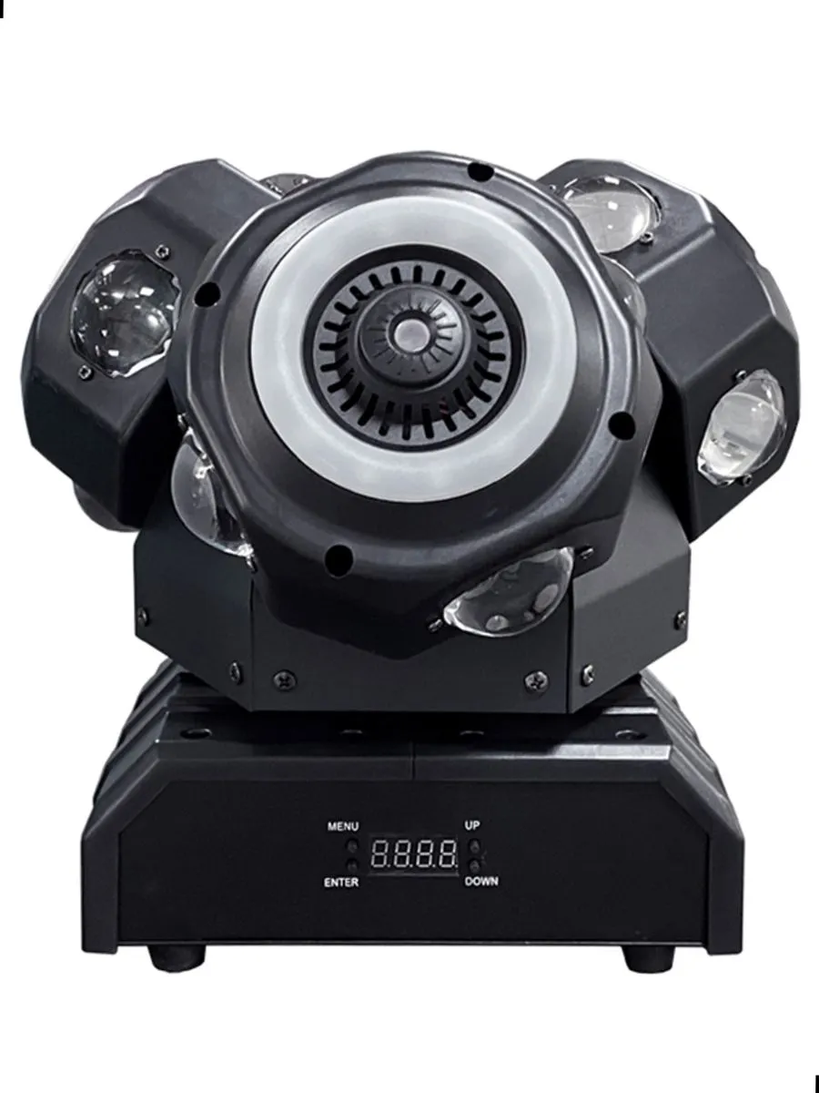 Led Star MA-E031 Вращающаяся светодиодная тройная голова, 200Вт, Beam 12*10Вт RGBW (3x4), Halo 3 кольца 12*0.2Вт RGB, Laser зеленый, красный, синий, авто, звуковая активация, DMX512, ведущий/ведомый, линейный диммер