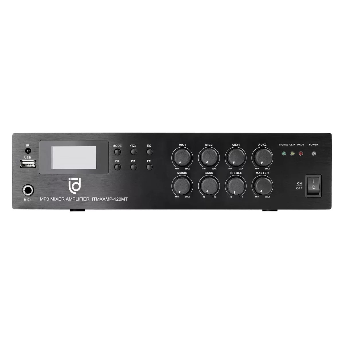Микшер-усилитель Intrend [ITMXAMP-120MT] MP3, FM тюнер, USB, Bluetooth, 2хMic/3хLine входы, 1хLine выход,120 Вт, 4/8Ом/100V, IR-пульт в комплекте