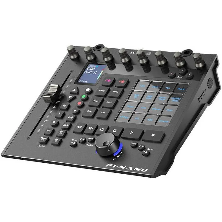 MIDI контроллер [110205A2016] Icon [P1 Nano] Компактный однофейдерный DAW контроллер,, 4-х дюймовый сенсорный дисплей, 8 двухфункциональных энкодеров, 12-сегментный светодиодный дисплей SMPTE, beat clock, Jog Wheel, функциональные кнопки, USB-C