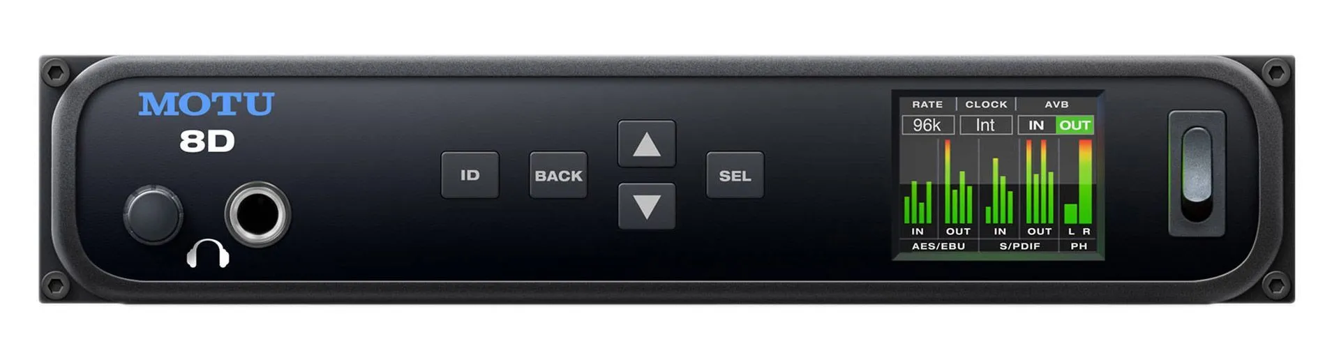 Аудиоинтерфейс USB [9375] Motu [8D] SRC и DSP, АЦП/ЦАП: 24бит/192кГц, 2xXLR AES3 входа, 2xRCA S/PDIF входа / 2xXLR AES3 выхода, 2xRCA S/PDIF выхода, 1/4" TRS Jack выход для наушников, Word Clock, AVB Ethrnet, USB-B
