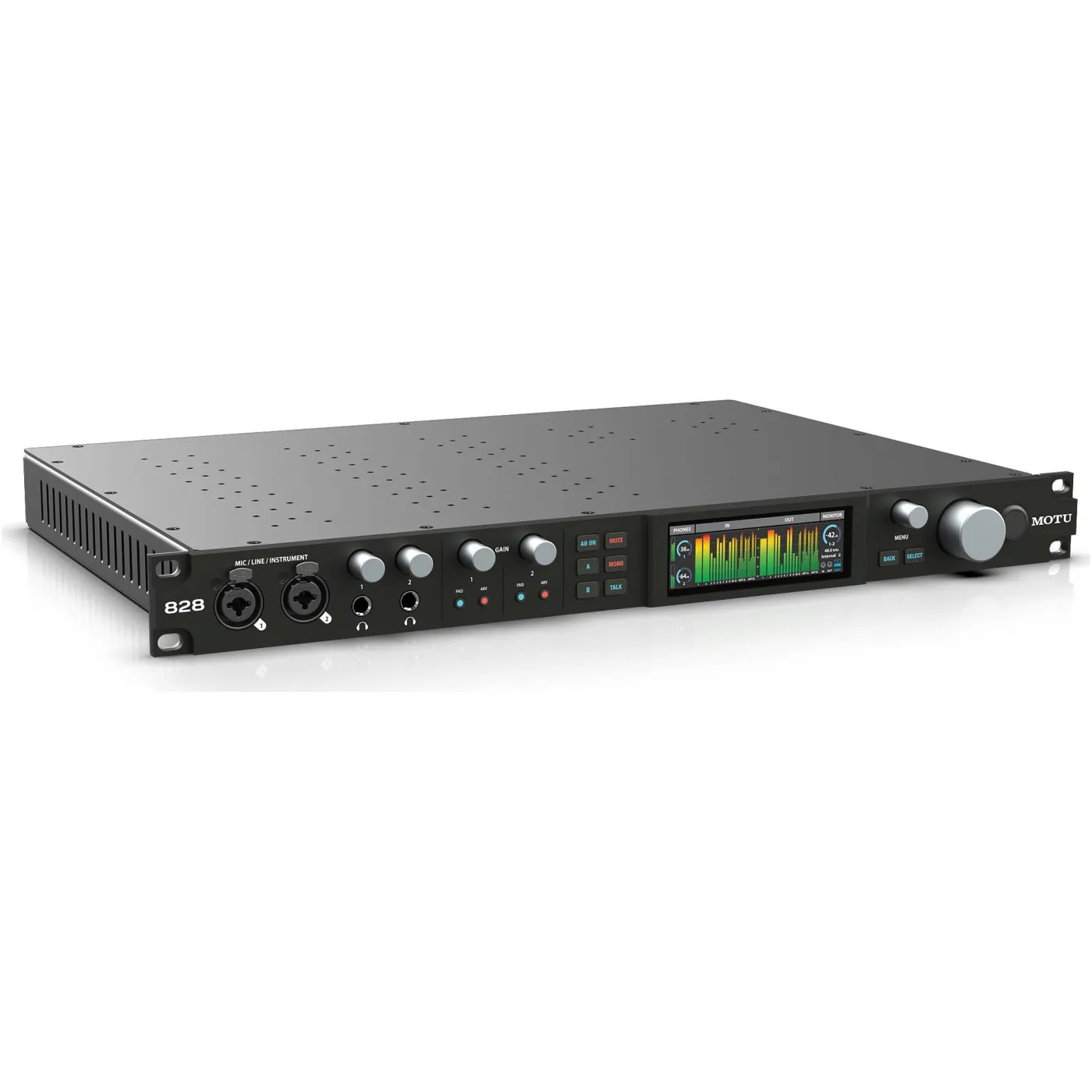 Аудиоинтерфейс USB [9390] Motu [828] АЦП/ЦАП: 24 бит/192 кГц, ЦАП: ESS Sabre 32, 125 дБ, 2хCombo XLR/TRS, 1/4" TRS, 1/4" TS, 2xXLR, 2x ADAT Toslink, RCA S/PDIF, MIDI, Word Clock, USB-C
