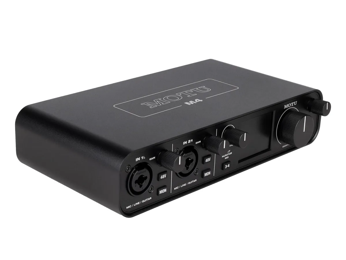 Аудиоинтерфейс USB [3140/3141] Motu [M4] АЦП/ЦАП: 24 бит/192 кГц, ЦАП ESS Sabre32 Ultra, 120 дБ, THD+N: -110 дБ, 2xCombo XLR/TRS, 2x1/4" TRS Jack входа / 4xRCA выхода, 4x1/4" TRS Jack выхода, 1/4" TRS Jack выход для наушников, MIDI, USB-C