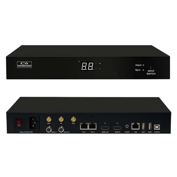 COLORLIGHT С6 (MediaPlayer) Медиаплеер для управления LED-экраном. Макс. емкость управляемых пикселей: 1.3 млн. пикс. Макс. возможные размеры изображения по горизонтали 4096 пикс. и вертикали 1536 пикс. Двойной порт USB2.0 для конфигурирования управлени