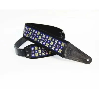 FIDEL FL22016E орнамент квадраты син.-желт./ чёрный - Ремень для гитары