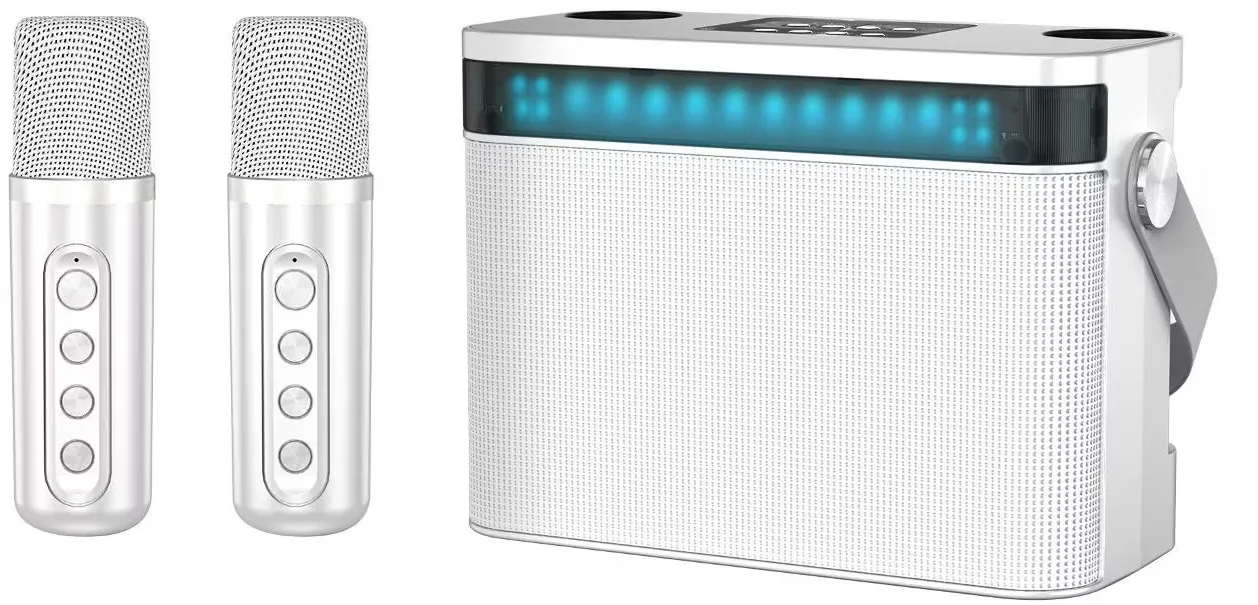 Переносная караоке система [TRS2403] iconBIT [K902W] Колонка 10Вт, 2 микрофона Bluetooth, световые эффекты, аккумулятор в колонке 3000mah и микрофонах, 22.3*9.6*15.7CM , цвет белый