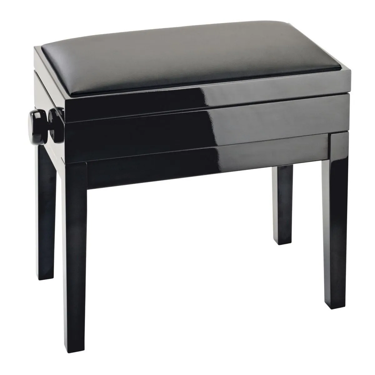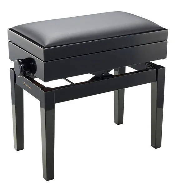 K&M 13951-200-21 банкетка для пианиста с отсеком для нот, бук, черный глянец, кожзам, 460-550 мм