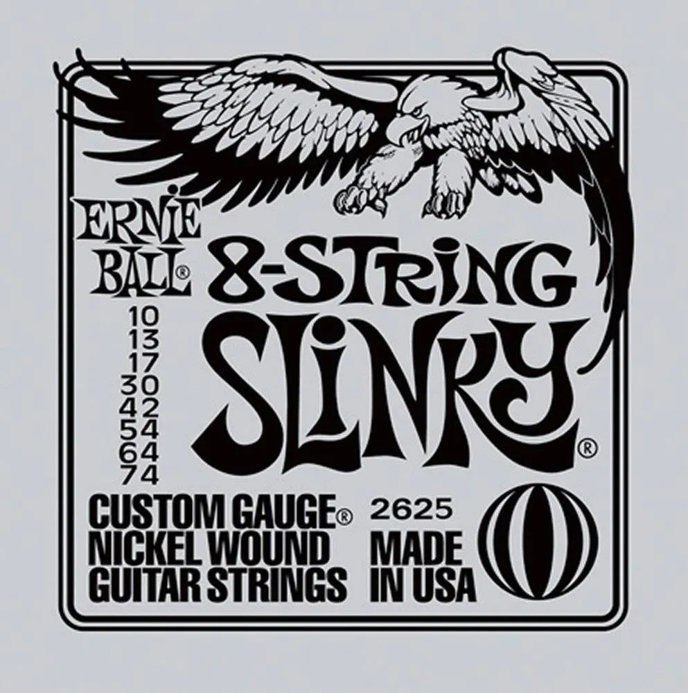ERNIE BALL 2625 Струны для 8 струнной электрогитары, Slinky Nickel Wound, среднее (10-13-17-30-42-54-64-74)