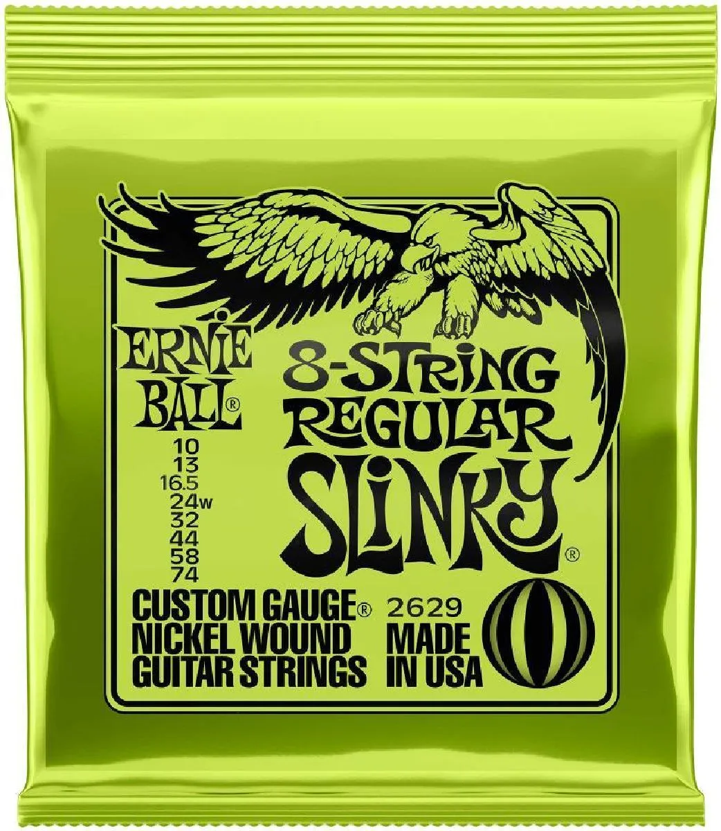 ERNIE BALL 2629 - струны для 8стр. эл.гитары Nickel Wound Regular Slinky 8 (10-13-16.5-24w-32-44-58-74)