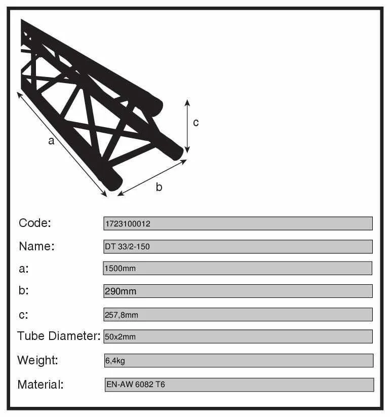 Dura Truss DT 33-150 Ферма алюминиевая, сечение 290х290мм, длина 150cм