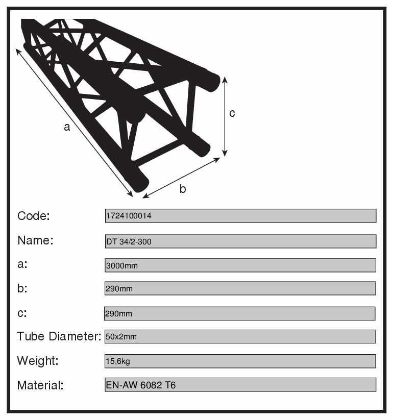 Dura Truss DT 34-300 Ферма алюминиевая, сечение 300х300мм, длина 300см. Труба 50х2. Макс. распределенная нагрузка 800 кг\м. Вес 15.60кгХарактеристики